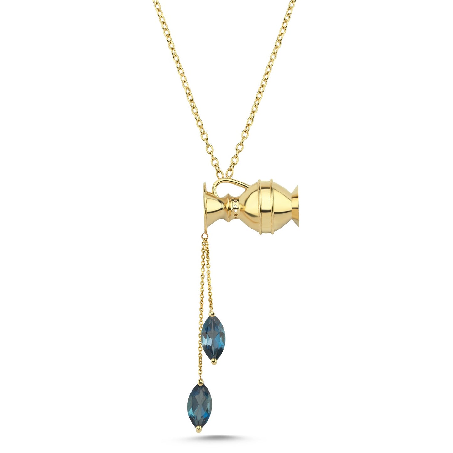 Embrace the innovative spirit of Aquarius with DIV's stunning Aquarius Necklace. This Zodiac-inspired piece features 14K Gold and two marquise-cut 2 CT London Blue Topaz gems. Wear it solo for a chic statement or pair it with other celestial beauties.