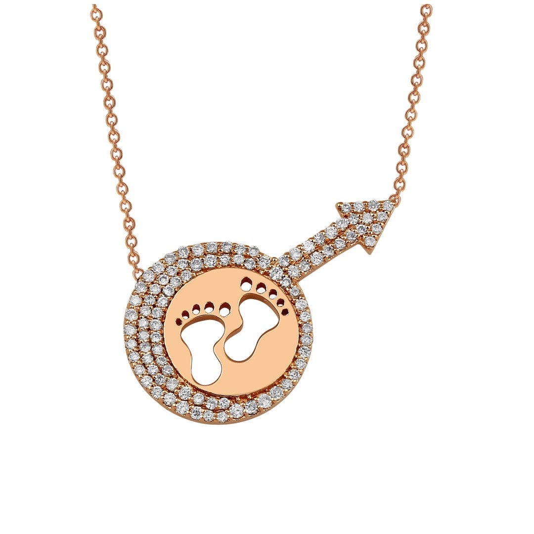 Introducing the Baby Boy Necklace from DIV's Charms & Amulets collection, a symbol of love and new beginnings. This 14K Rose Gold necklace features brilliant cut diamonds, totaling 0.32CT, encircling a 14mm motif. Worn alone or layered, this 42cm chain adds a touch of elegance to any ensemble.