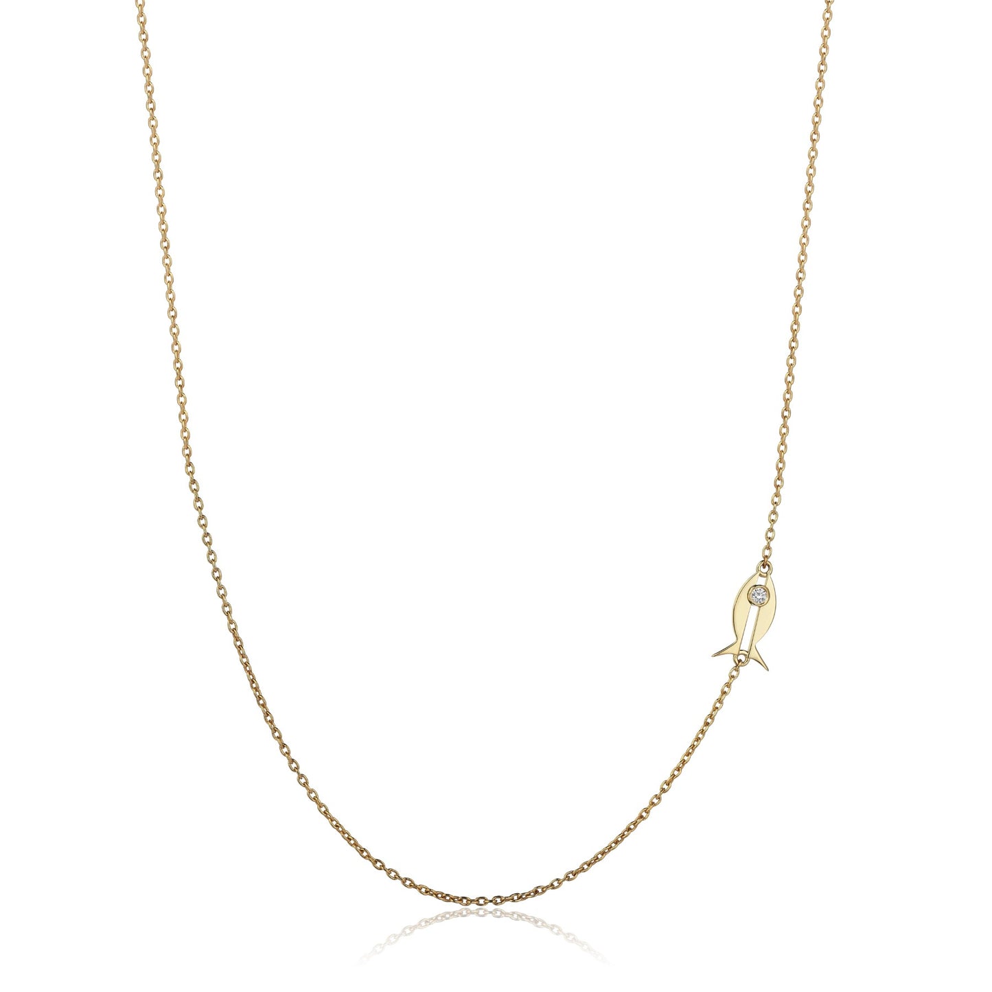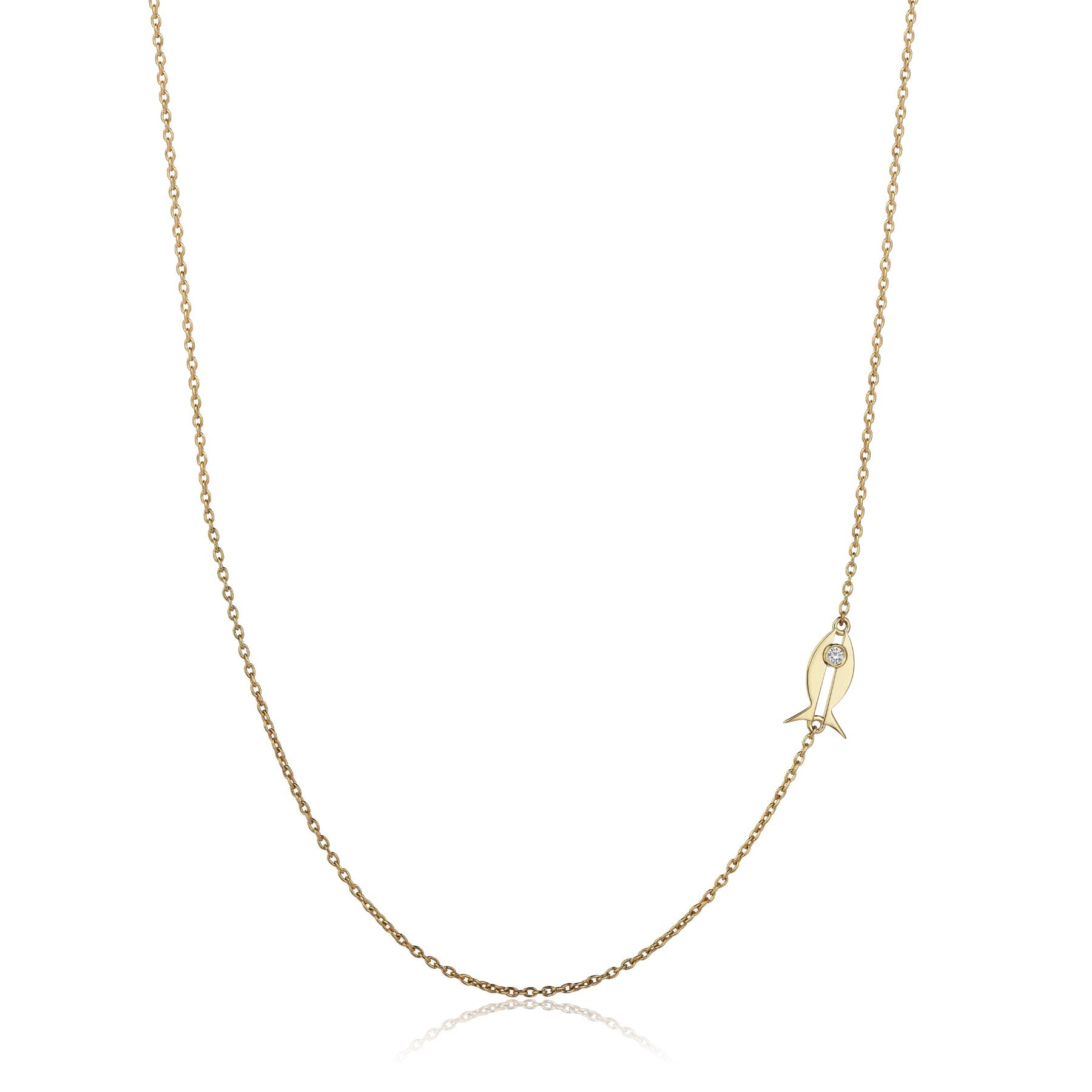 Embrace aquatic elegance with the Baby Fish Necklace from our Wishes & Fishes Collection. Crafted from radiant 14K gold, this piece features a dazzling 0.012 CT diamond, embodying pure sophistication. Wear it alone for a subtle touch of luxury or pair with other necklaces for a statement ensemble.