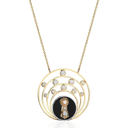 Discover the enchanting Circle Door Necklace from DIV's Knock On The Door collection, a symbol of unity and wholeness. Crafted from 18K Gold, the pendant features a mesmerizing arrangement of 0.012 CT and 0.0233 CT Diamonds, creating a sparkling allure.