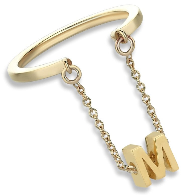 Elevate your style with our gold initial ring featuring a distinctive shaky letter design, elegantly hanging on a chain. This versatile piece allows you to wear it as a ring or easily transform it into a personalized necklace. Crafted with precision and attention to detail, our initial ring adds a touch of glamour and individuality to any outfit. Shop now and make a statement with this stylish and versatile piece that effortlessly combines the beauty of gold with a unique letter design.