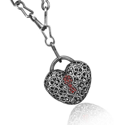 Unlock the secret of love with the Heart Necklace With Ruby Keyhole, an enchanting piece from the Knock On The Door collection. This 18K Gold necklace features a stunning heart pendant adorned with 0.15 CT of 14 radiant Rubies and Hand-Made special chain.